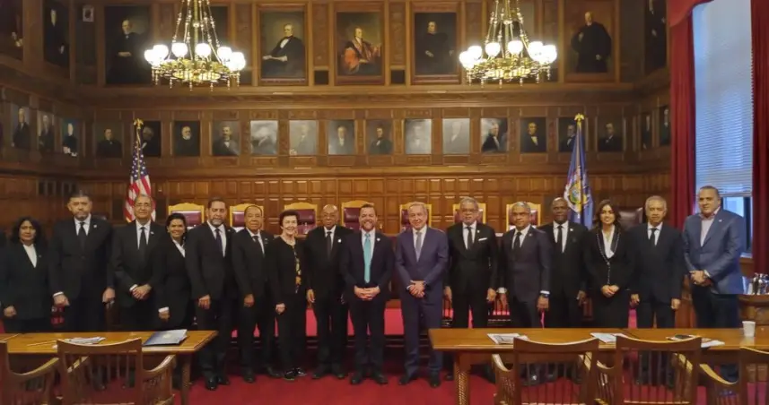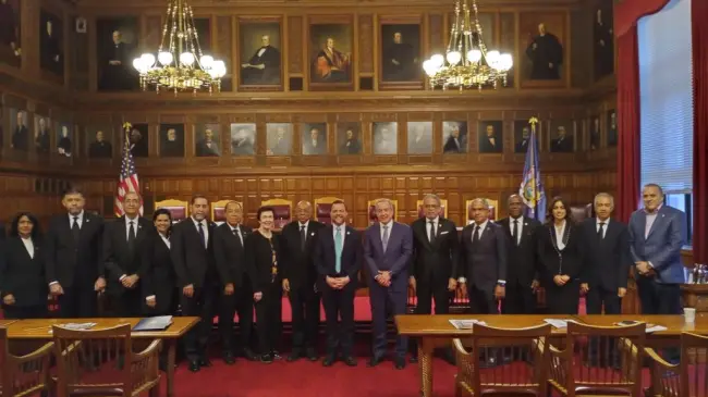 Nueva York.– NUEVA YORK.- El presidente del Tribunal Constitucional, Milton Ray Guevara y los demás magistrados miembros de dicho organismo visitaron la Corte de Apelaciones del estado de Nueva York, presidida por el juez Anthony Cannataro, en compañía de la embajadora dominicana en los Estados Unidos, Sonia Guzmán.