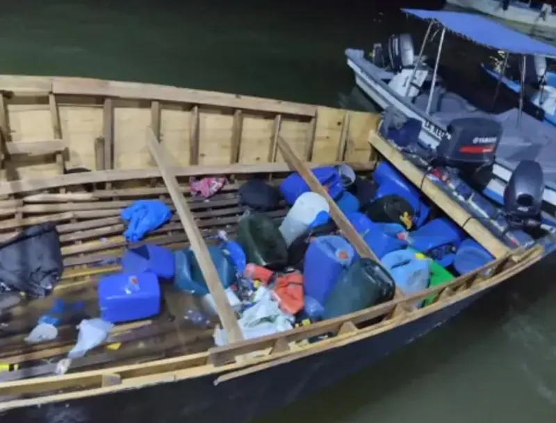 Durante el operativo, fueron ocupados además dos motores fueraborda, uno de 75 HP y otro de 40 HP, además de 17 garrafones de combustibles, entre ellos ocho llenos y nueve vacíos, encontrados en el interior del bote.