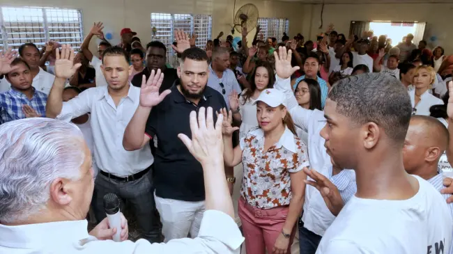 Santo Domingo. – Durante el acto de presentación de Janet Camilo como precandidata a la Alcaldía de Distrito Nacional por el Partido Revolucionario Dominicano (PRD), Miguel Vargas Maldonado juramentó a un grupo de nuevos miembros de la organización opositora en la Circunscripción número dos de dicha localidad.