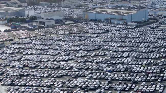 Miles de autos de alta gama llevan meses estacionados en un puerto de Alemania
