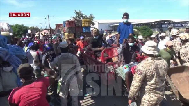 En la frontera dominico-haitiana, miles de haitianos intentan cruzar a territorio dominicano para comprar un galón de gasolina o un poco de comida que puedan llevar a sus familiares debido a la situación que existe en el vecino país.