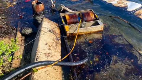En ese traslado, la tripulación del barco avistó un brillo en el agua, de aproximadamente 100 metros de largo y cuatro de ancho, decidiendo detener el proceso e investigar.