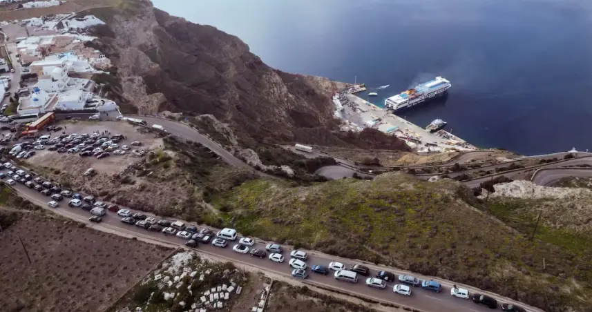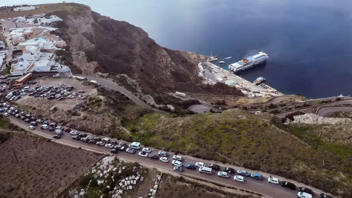 Ayer, en la isla de Santorini, de unos 25,000 habitantes y uno de los destinos más turísticos de Grecia, se produjeron grandes atascos de tráfico en las calles que conducen hacia el puerto y el aeropuerto, mientras miles de lugareños, trabajadores y turistas trataban de abandonar la isla.