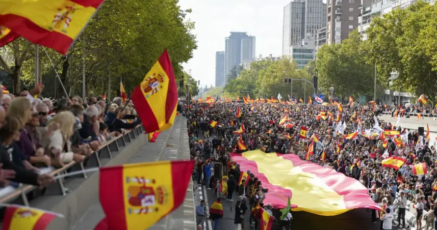 La protesta, que contó con unos 25.000 asistentes, lanzó insultos a Sánchez y demandas de dimisión, centrada en el lema "Por la dignidad de España".