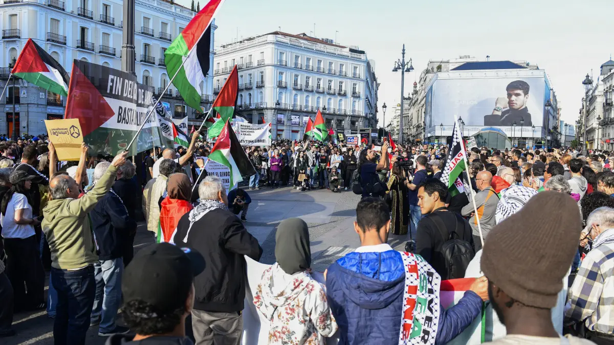 En Madrid, cientos de personas se concentraron en la céntrica plaza del Sol, en la quinta movilización nacional contra el "genocidio" en Palestina.