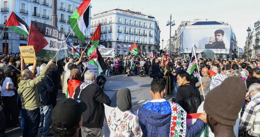 Madrid.– Madrid.- Varios miles de personas se manifestaron este sábado en ciudades españolas contra lo que consideran que es un "genocidio" del pueblo palestino por parte de Israel en la Franja de Gaza, con la participación también de estudiantes acampados en varias universidades en señal de protesta.