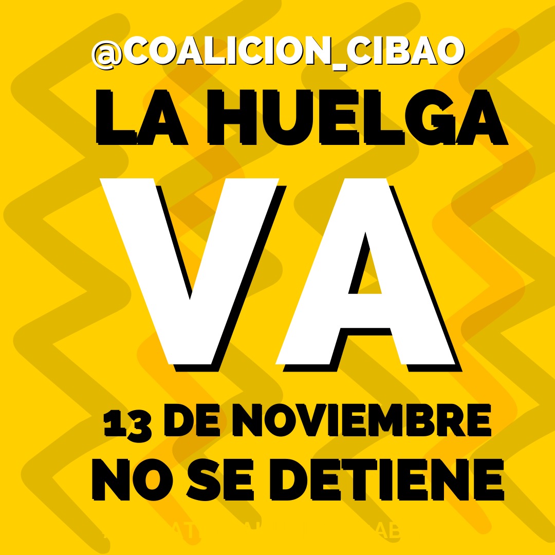 La Coalición del Cibao, integrada por cientos de entidad y organizaciones, han ratificado su llamado a huelga programada para el próximo 13 de noviembre, y desminten categóricamente los rumores falsos que han puesto a circular el gobierno sobre la suspensión de la huelga.