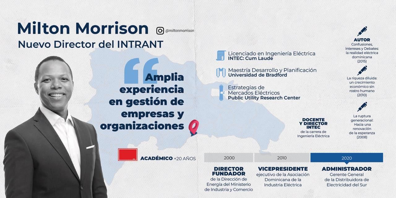Santo Domingo.– Santo Domingo.- En una reciente decisión presidencial, Luis Abinader ha designado a Milton Teófilo Morrison Ramírez como el nuevo Director del Instituto Nacional de Tránsito y Transporte Terrestre (INTRANT). Morrison Ramírez, quien ha sido una figura en el sector energético dominicano, ocupó desde 2020 el cargo de Director General de Edesur Dominicana, donde su gestión ha sido reconocida por numerosos logros y avances significativos.