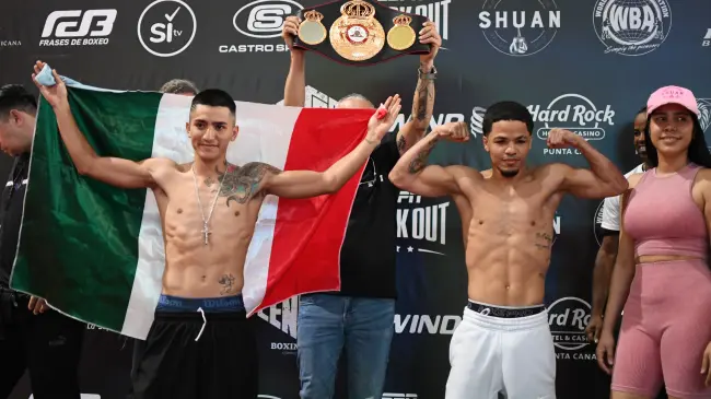 Ambos púgiles pasaron la prueba de la báscula y dejaron preparado el escenario para la pelea en la que estará en disputa el vacante título minimosca (108 libras) de la Asociación Mundial de Boxeo (AMB).
