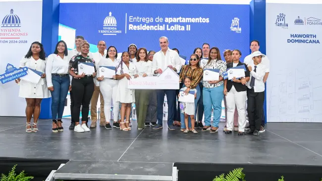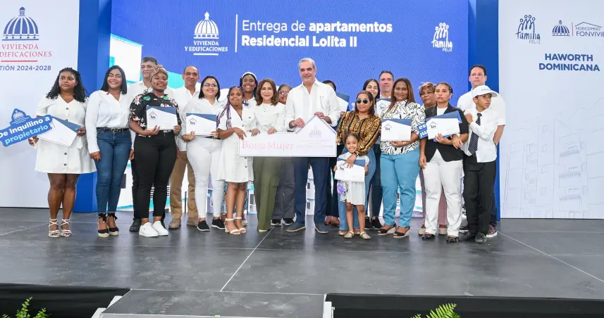 En un acto encabezado por el presidente de la República, Luis Abinader; la ministra de la Mujer, Mayra Jiménez; y el ministro de Viviendas y Edificaciones, Carlos Bonilla, el Ministerio de la Mujer entregó RD$ 6,940,000.00 millones de pesos en Bono Mujer, en el marco del Plan Nacional de Viviendas Familia Feliz, en el proyecto Residencial Lolita II, en Hato Nuevo de Manoguayabo, en Santo Domingo Oeste.
