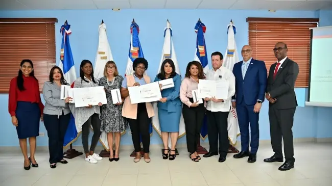 Kayra Quintero, Estrella Sánchez, Ana Castro y Selinex Tapia, del Instituto Tecnológico de las Américas; Alba Tejeda, de la Oficina Gubernamental de Tecnología de la Información y Comunicación; Jhoendy Soriano, de la Universidad del Caribe; Anyélica Reinoso, de la Universidad Tecnológica de Santiago; Génesis Espinal, de la Pontificia Universidad Católica Madre y Maestra; y Saira Hernández, de la Universidad Iberoamericana, fueron las estudiantes premiadas.