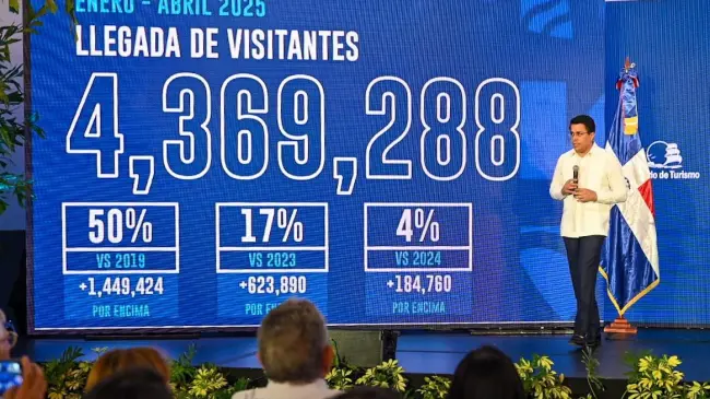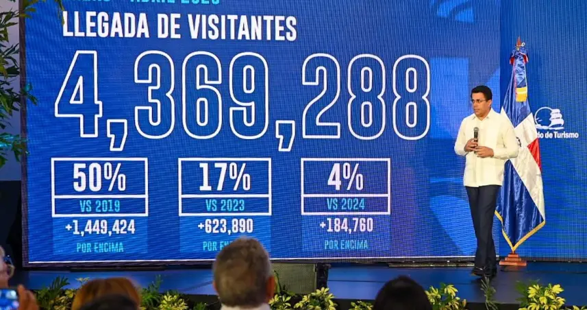 El funcionario señaló que la llegada de 1,020,646 de visitantes en abril representa un aumento de un 7% respecto al mismo mes del 2024, un 18 del 2023 y un 55% con relación al 2019.