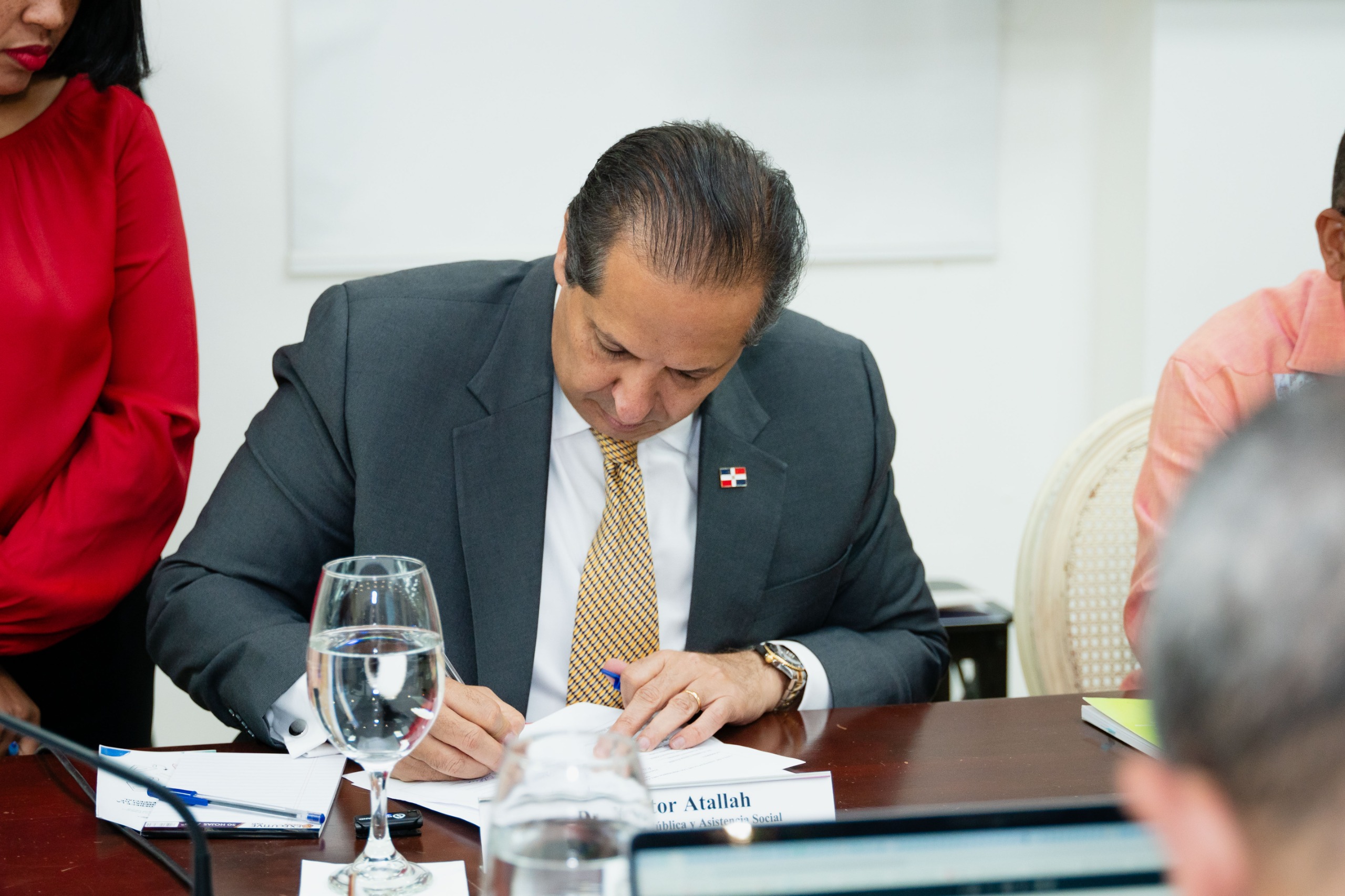Santo Domingo. - El ministro de Salud, Víctor Atallah, fue juramentado por el ministro de educación Ángel Hernández, como miembro del Consejo Nacional de Educación (CNE), durante una sesión realizada este miércoles en el salón Ercilia Pepín del Ministerio de Educación.