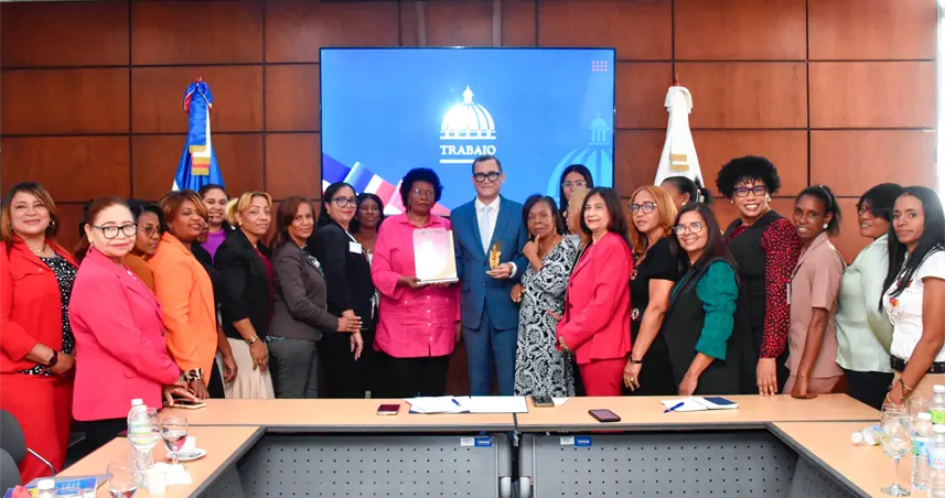 Santo Domingo –.– El ministro de Trabajo, Eddy Olivares Ortega, recibió un reconocimiento por parte de mujeres representantes de las tres principales centrales sindicales del país, en reconocimiento a su destacada gestión a favor de la inclusión, la equidad de género y la promoción de los derechos laborales de las mujeres en la política pública laboral.