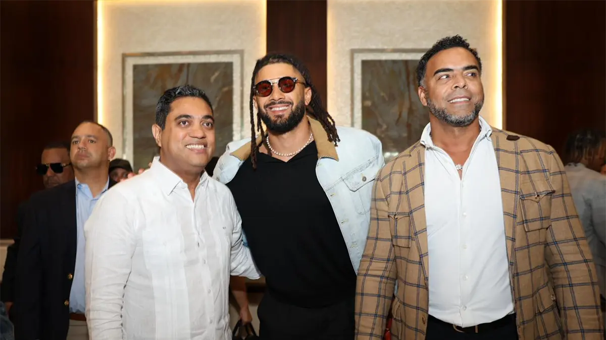 Un back panel con las frases «Los mejores del mundo», «¡Orgullo dominicano!» y «Bienvenidos» engalanó el lobby.