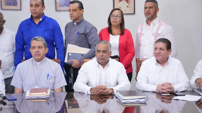 La reunión tuvo lugar en el obispado de La Vega y estuvo también encabezada por el monseñor Carlos Morel Diplán; el Defensor del Pueblo, Pablo Ulloa; Juana Barceló, presidenta de Barrick Pueblo Viejo; Rolando Muñoz, director de Minería; Roberto Núñez, alcalde de Bonao y Martín Guzmán, por las comunidades.