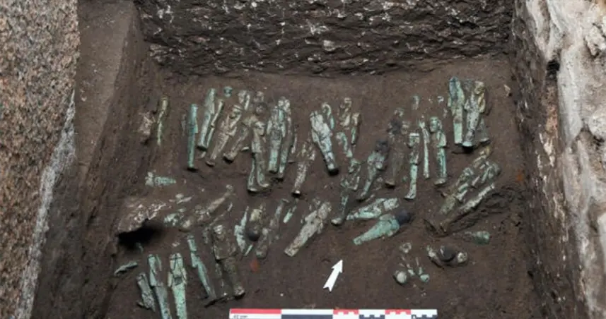 El descubrimiento de las estatuillas se produjo concretamente el 9 de octubre, tras retirar el barro salino que se acumula en este yacimiento por el tipo de suelo y la proximidad de las napas freáticas.