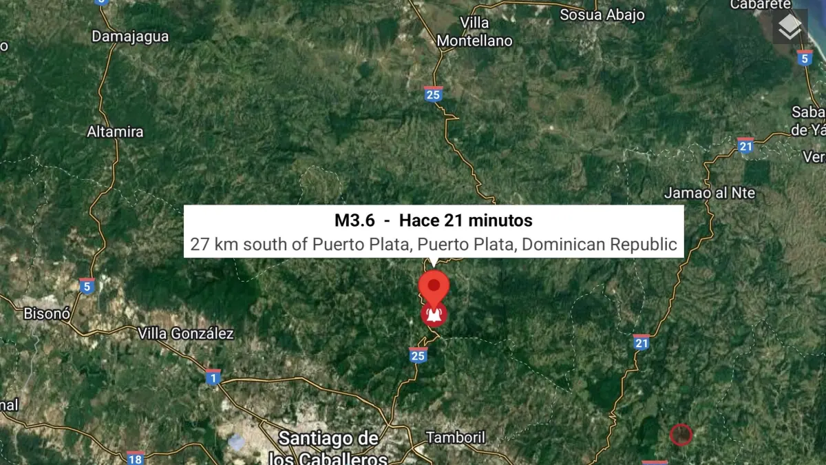 Un temblor de tierra de magnitud 3.6 en la escala de Richter se registró este miércoles en horas de la noche, con epicentro en la comunidad de La Cumbre, ubicada entre Puerto Plata y Santiago, en la República Dominicana.