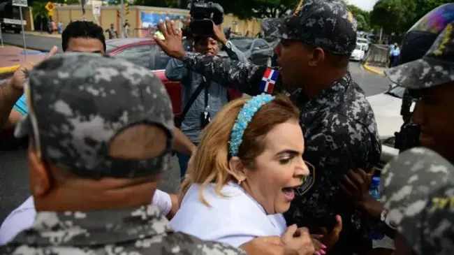 SANTO DOMINGO.- Entre forcejeos y con gas pimienta fueron recibidos en las inmediaciones del Palacio Nacional decenas de doctores que marcharon con el Colegio Médico Dominicano desde la Maternidad Nuestra Señora de La Altagracia en demanda de mejoras al sistema sanitario. Además, a su llegada no fueron recibidos en la casa de gobierno.