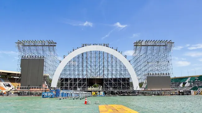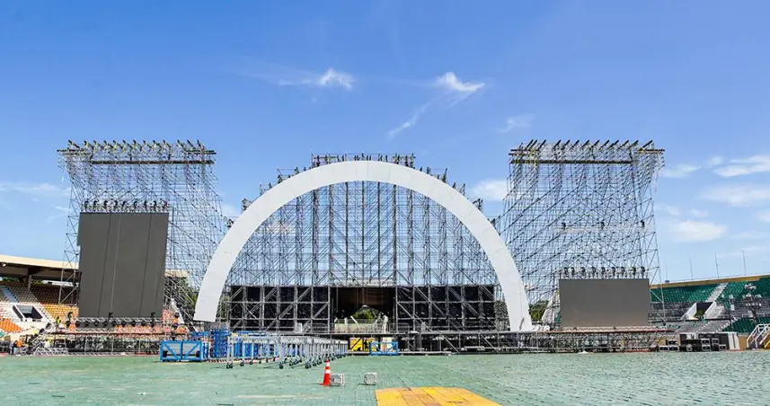 Montaje de escenario para concierto de Karol G se encuentra casi listo