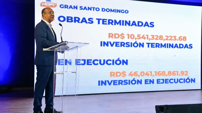 Dijo que de este monto 38,508,849,440.08 millones de pesos fueron con fondos del presupuesto; SRD 38,508,849,440.08 3,031,638,243.64 con fondos externos y 17,098,491,873.46 provenientes de recursos de RD Vial}