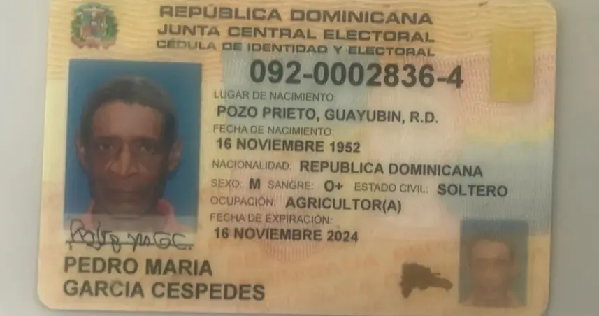 De acuerdo a su documento de identidad dice que García Céspedes es de Pozo Prieto, Guayubin.