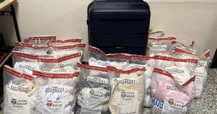 "En el interior del equipaje se incautaron 12 franelas, 53 poloshirt, nueve pares de medias, (18 unidades), 15 abrigos, 02 toallas, un pantaloncillo, una sabana, cinco unidades de ropa para bebe y cuatro pantalones; cabe destacar que las unidades actuantes eligieron al azar una de las prendas, la cual al ser sometida a una prueba de campo, arrojó positivo a cocaína