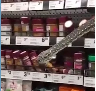 Momento en que mujer compra especias en supermercado y encuentra serpiente en las góndolas
