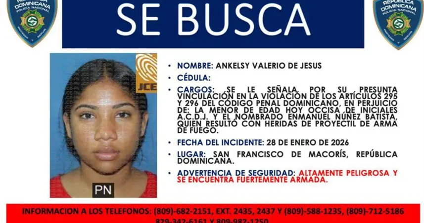 La presunta autora, identificada como Ankelsy Valerio de Jesús, de 22 años, se encuentra prófuga y se le exhorta entregarse por la vía que entienda pertinente.