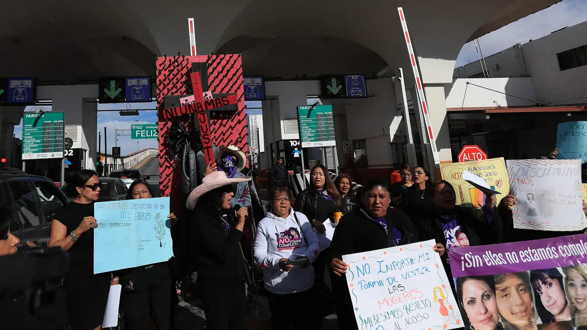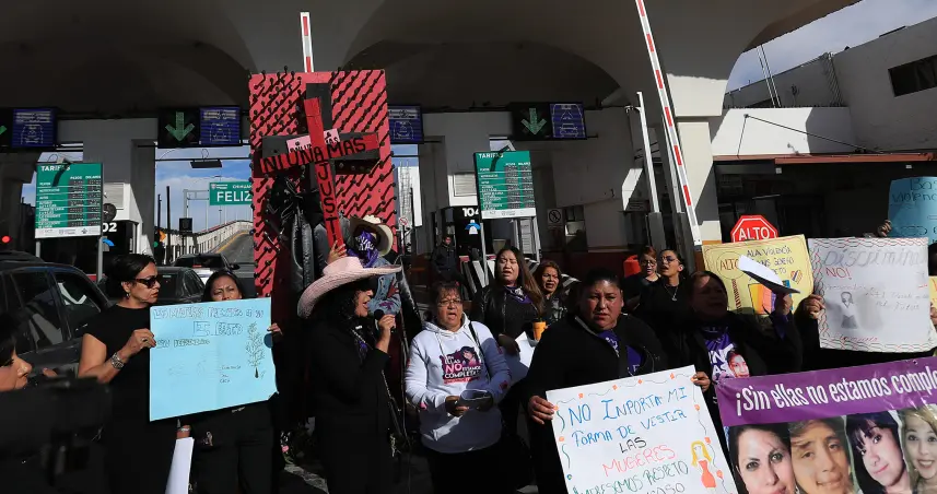 Las manifestantes, situadas en la entrada del Puente Internacional Paso del Norte, denunciaron la persistencia de la impunidad y el fracaso de los gobiernos en enfrentar una crisis que trasciende fronteras.