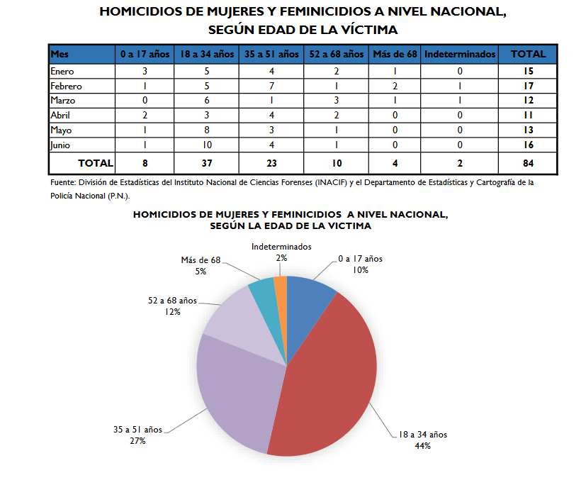 De acuerdo al documento, un 12% de las víctimas tenía edades entre los 52 a 68 años, mientras que un 10% de estas eran menores de 18 años, y el 5% tenía más de 68 años. El 2% de los casos corresponden a mujeres cuya edad no ha sido determinada.