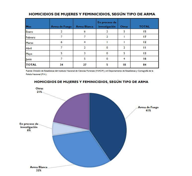 A continuación, gráficos de homicidios de mujeres y feminicidios, según tipo de arma: