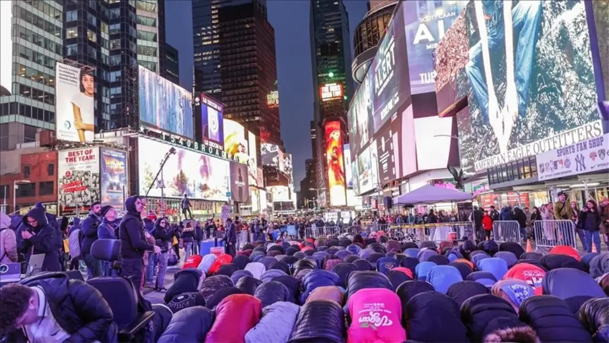 Nueva York.- La lluvia y el frío invernal en Nueva York no impidieron que este viernes musulmanes se reunieran en Times Square, rodeados por las luces y anuncios publicitarios, para su oración del Tarawi, que desde el 2022 les convoca en este céntrico lugar durante el Ramadán, que comenzó el pasado miércoles.