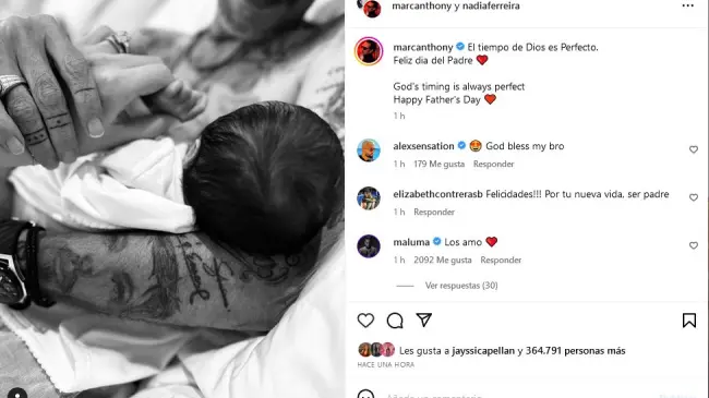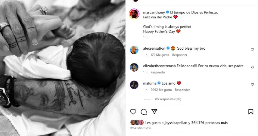 “El tiempo de Dios es Perfecto. Feliz día del Padre ❤️God’s timing is always perfectHappy Father’s Day”, escribió el artista junto a una foto en la que aparece cargando al recién nacido.