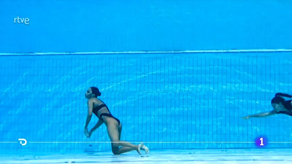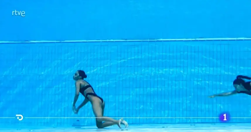 Un percance que se quedó sólo en su susto gracias a la rápida intervención de su entrenadora, la española Andrea Fuentes, que no dudó en lanzarse a la piscina para rescatar a su pupila.