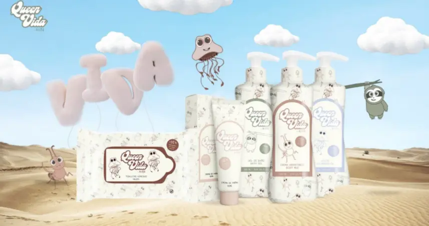 La línea "Queen Vida for Kids" incluye toallitas húmedas, crema de pañal, crema hidratante, aceite corporal, protector solar, pañales y perfumes.