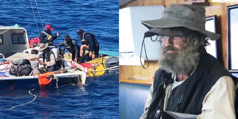 Shaddock, fue rescatado por un helicóptero que acompañaba a un buque de pesca atunero, quien vio la embarcación en medio del océano y dio paso a su rescate.