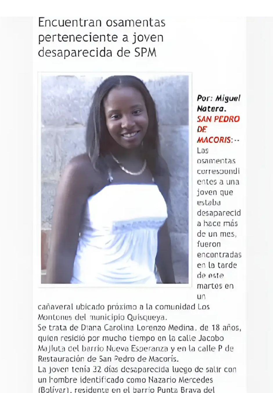 En el Ingenio Quisqueya, en San Pedro de Macorís habría asesinado a Diana Carolina Lorenzo Medina, en 2008.