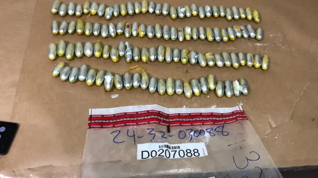 De acuerdo al informe, tras ser sometidos al protocolo, los dos extranjeros, expulsaron 107 y 75 bolsitas, todas resultando positivo a sustancias controladas, para un total de 182 cápsulas, con un peso de 3.45 kilogramos de cocaína.