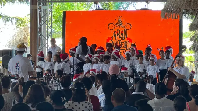 Santo Domingo.– Santo Domingo.- Con más de cien niños en escena, el coro y la Orquesta Sinfónica Infantil y Juvenil de Punta Cana, realizó el concierto “Melodías de Navidad” en las instalaciones del Caribbean Lakepark, en Downtown Punta Cana, en un evento cargado de alegría y que contó con la concurrencia de la comunidad de la zona este del país.