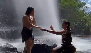 Novia se resbala en una cascada al momento de aceptar propuesta de matrimonio
