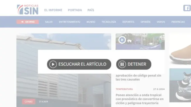 En la página web de SIN, el usuario podrá seleccionar la noticia deseada y debajo de la fotografía del suceso, encuentra una barra lateral derecha similar a las notas de voz, que solo con pulsar “Reproducir” puede escuchar todo lo que está escrito.