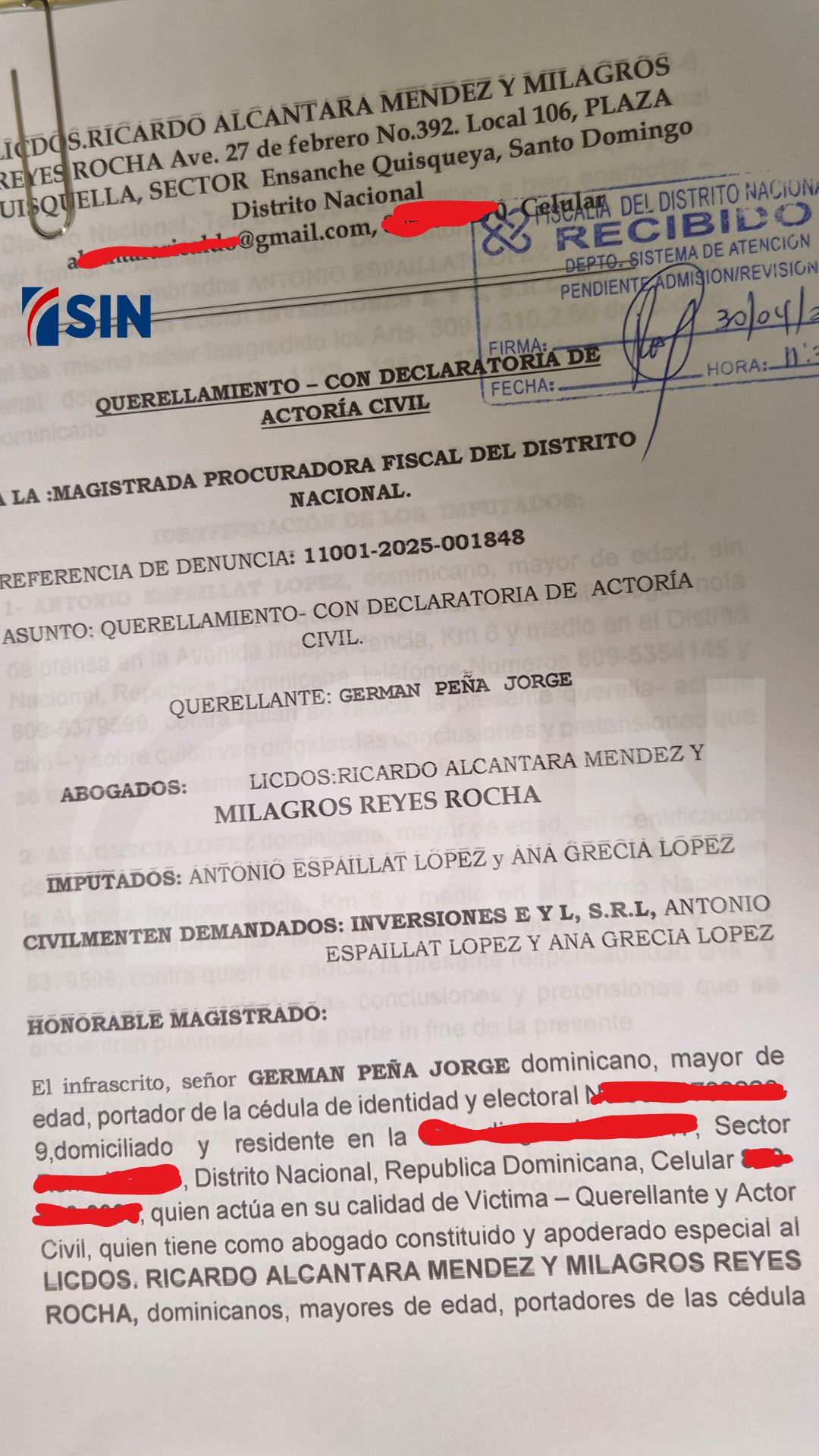 La demanda fue presentada por los abogados de una de las víctimas, quienes también solicitan prisión preventiva para el empresario Antonio Espaillat.