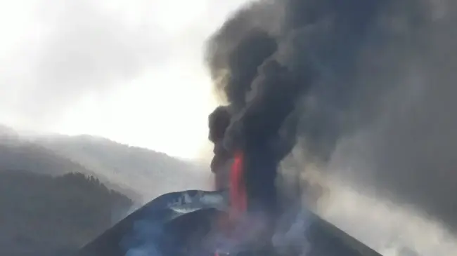 ESPAÑA.- El volcán en erupción de La Palma (España) ha registrado una nueva ruptura del cono, lo que ha provocado más desbordamientos de lava y desprendimientos que han generado corrientes de aire, ha informado el Instituto Volcanológico de Canarias, Involcan.