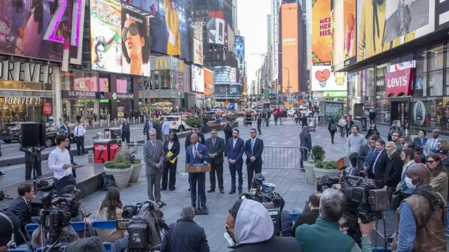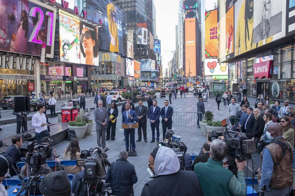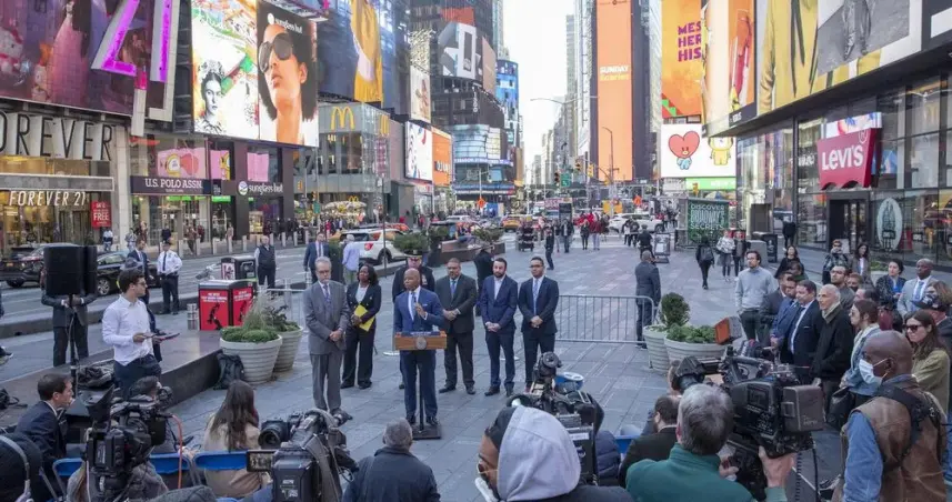 El alcalde de Nueva York, Eric Adams, señaló que con esta ley quieren que los 56 millones de turistas que proyectan visitarán la ciudad este año "estén a salvo" cuando caminen por Times Square.