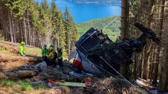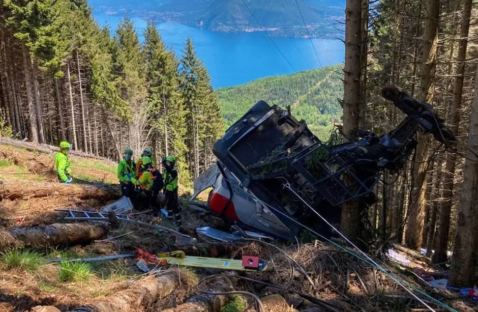 El accidente tuvo lugar a 300 metros de la estación de llegada, en Maottarone, y a 1.490 metros de altitud, cuando cedió el cable y la cabina se estrelló contra un bosque.
