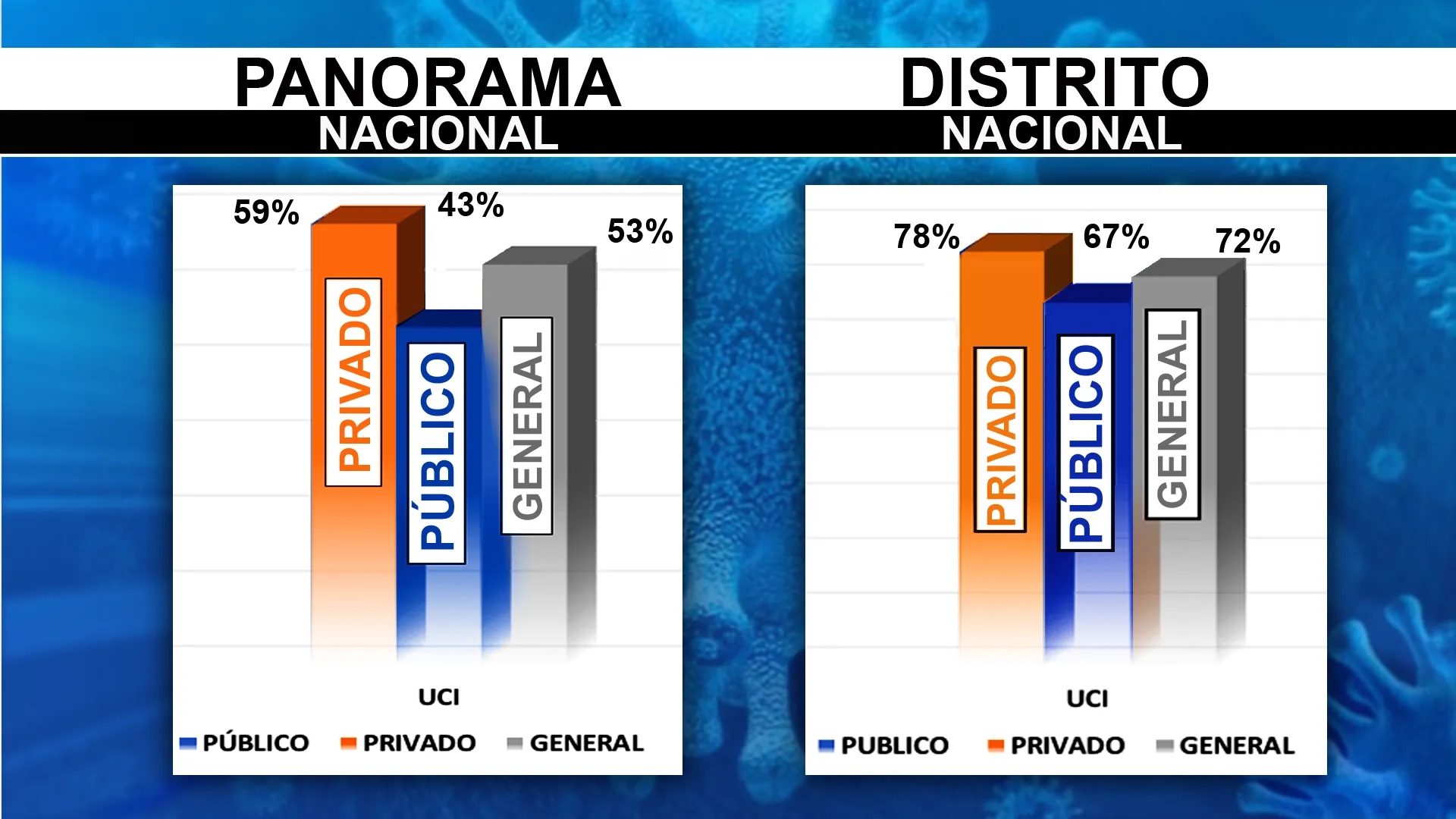 La ocupación en UCI en las clínicas también aumento de 42 a 48 por ciento.