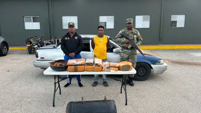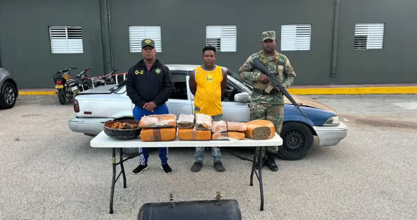 Dijo que los 11 paquetes de un vegetal, que se presume es marihuana, con un peso aproximado de 49 libras, fueron incautados en el interior de un tanque de gas , que era transportado en un carro Toyota Corolla gris, conducido por Ramón Reyes Hernández, quien fue detenido en el puesto de chequeo número #2 de la Fortaleza La Estrelleta del ERD en Elías Piña.