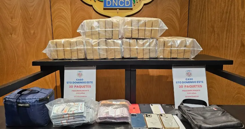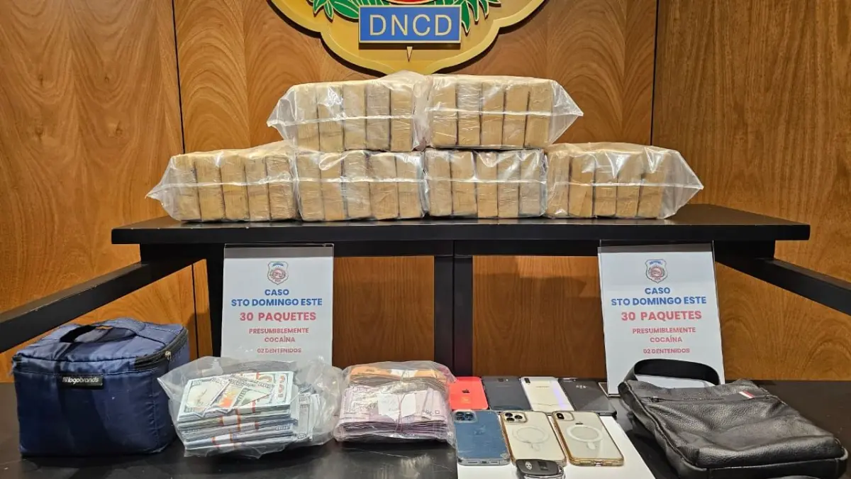 Agentes de la DNCD y miembros de la Policía Nacional, apoyados por miembros del Ministerio Público, ocuparon 30 paquetes presumiblemente cocaína, en una operación de interdicción desarrollada, en el municipio Santo Domingo Este.