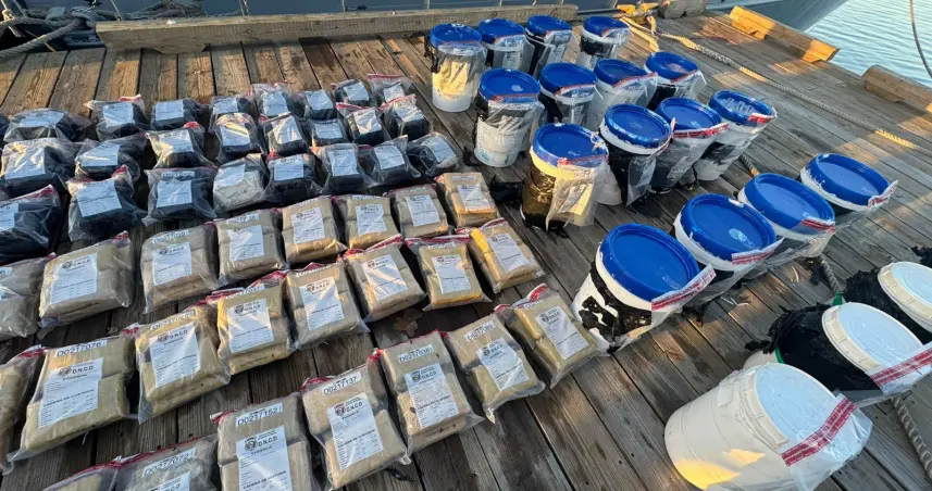 Horas después de activar el protocolo de actuación, los equipos aéreos, navales y terrestres lograron interceptar, a varias millas náuticas al sur de las costas del municipio de Baní, una embarcación con tres dominicanos a bordo. En su interior transportaban 24 pacas y 20 cubetas llenas de una sustancia que se presume es marihuana.